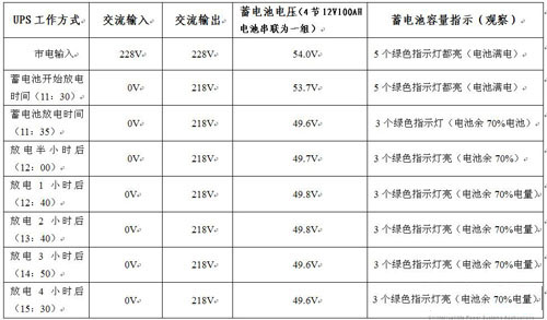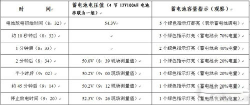 由于这台UPS已经运行了两年多时间,蓄电池属于国产普通品牌,起初怀疑蓄电池性能弱化,首先对UPS做了一次放电检测试验,以检验蓄电池的放电特性。