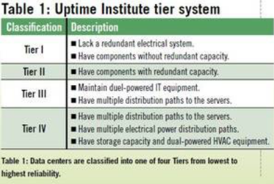 确定选择哪个层级取决于许多方面的因素。许多企业组织以前都有大型整合的数据中心,导致他们倾向于选择一款Tier III或Tier IV系统。此外,许多金融业界的企业组织则选择Tier III和Tier IV系统。其他企业组织选择拥有多处数据中心,以便当某处数据中心出现故障时,可以在另一处处理数据需求,从而导致这类企业使用较低层级的系统。