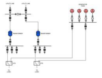 公共供电服务:与任何其他项目一样,设计师们需要从对于数据中心所在当地的公共供电服务开始考虑。由于可靠性的重要性,数据中心业主必须尽早与公用供电服务公司讨论相关的供电服务事项。根据数据中心的规模大小,服务选项包括采用单独的专用供电线路或现有的非常可靠的线路。