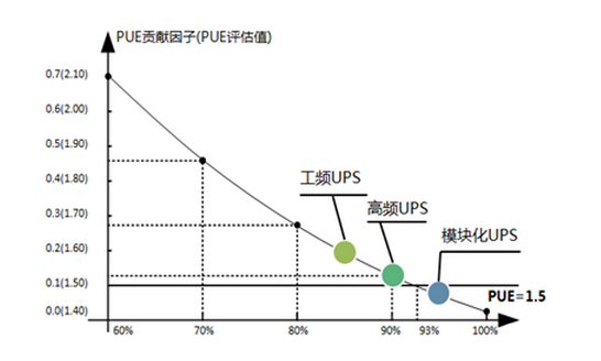 图一:不同类型UPS对PUE贡献差异可达0.1以上