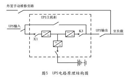 当前市场上的主流UPS,从输入方式来看,可以分为单输入和双输入两种,其中采用单输入的UPS一般集中在小功率段上;图5示出了一般中大功率UPS电路原理结构图。
