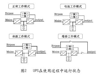 UPS自问世以来,已从最初的动态式,发展到现在采用全控功率器件产品。UPS在使用过程中运行状态如图2所示: